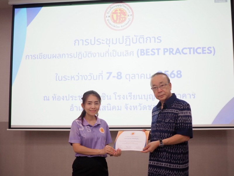 ท่านวิจัย อัมราลิขิต ประธานกรรมการบริหารโรงเรียนบุญญวิทยาคาร ได้มอบเกียรติบัตรให้แก่คุณครู
