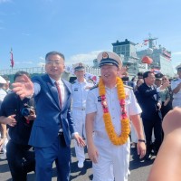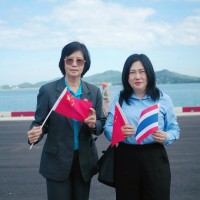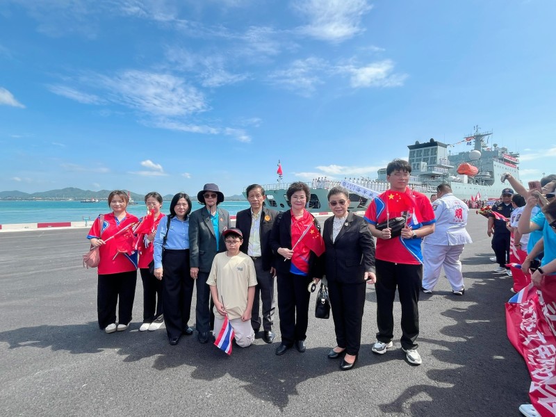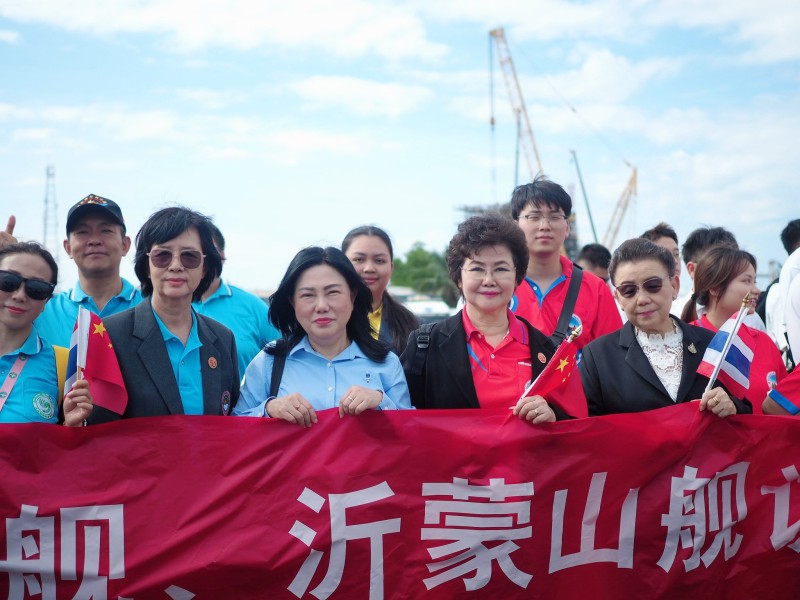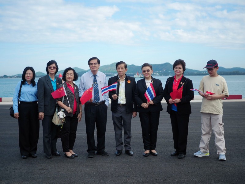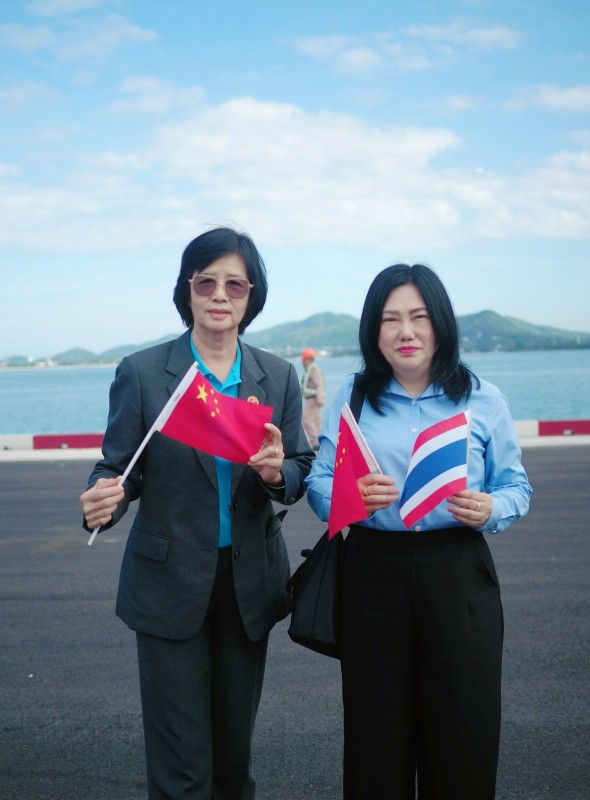 ผู้อำนวยการวันเพ็ญ วิถีธรรมในนามคณะกรรมชมรม โรงเรียนสอนภาษาจีนภาคตะวันออก ร่วมต้อนรับกองเรือจีน: เรือฉีจี้กวงและเรือยี่เหมิงซานซึ่งมาเยือนประเทศไทย ณ ท่าเรือฐานทัพเรือสัตหีบ