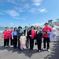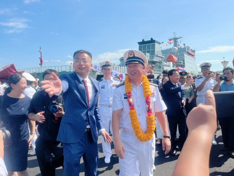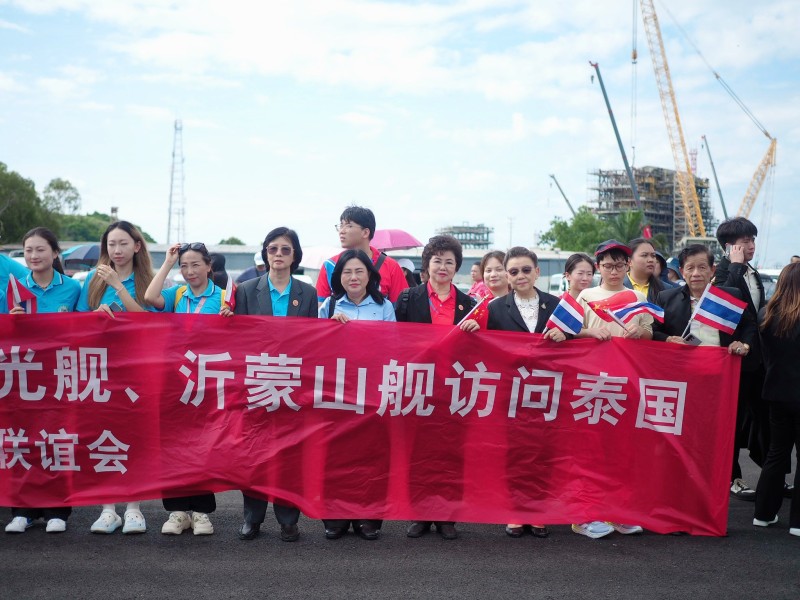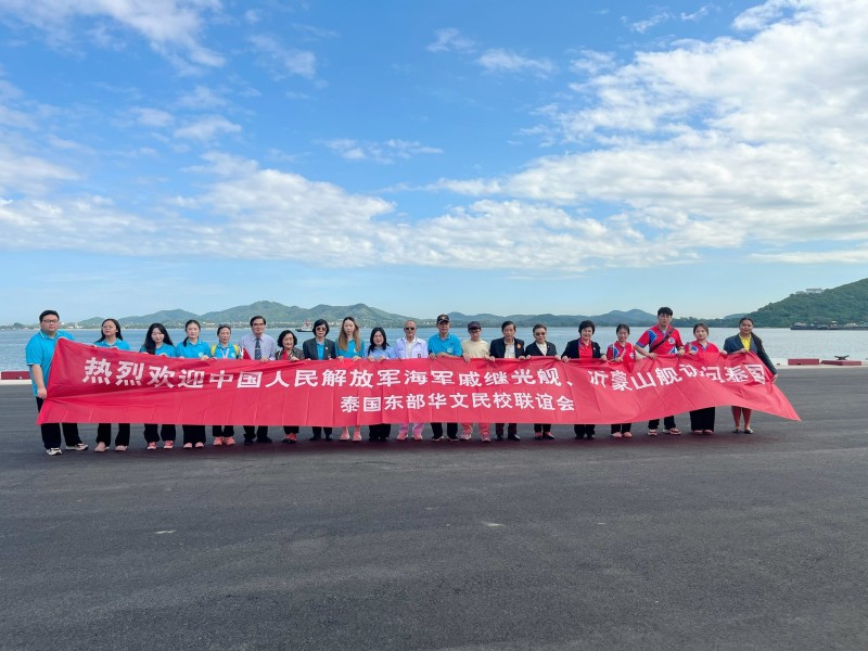 10 月 16 日上午中国海军舰艇编队: 戚继光舰、沂蒙山舰 访问泰国, 我们东部华文民校联谊会于梭淘邑海军基地,共同迎接祖国海军的威武之师。让鲜艳的五星红旗在泰国的码头迎风飘扬,用最热烈的掌声和最真挚的情感,向远道而来的海军官兵致以崇高敬意。让他们在异国他乡,感受到来自同胞的赤子热情与深情厚谊。