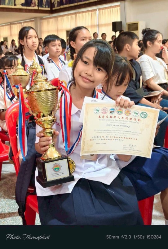 4. เด็กหญิงนันทภัท ทับทิมทิวาพร ได้รับรางวัลเหรียญทอง ในการแข่งขันท่องบทกวีจีน ระดับชั้น ป.4-ป.6
