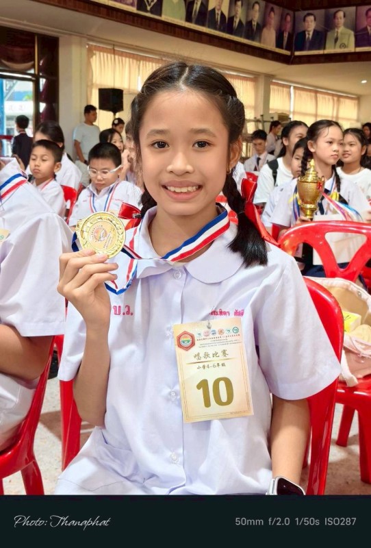 6. เด็กหญิงมณฑิตา สัสดี ได้รับรางวัลเหรียญทองในการแข่งขันร้องเพลงจีนระดับชั้น ป.4-ป.6