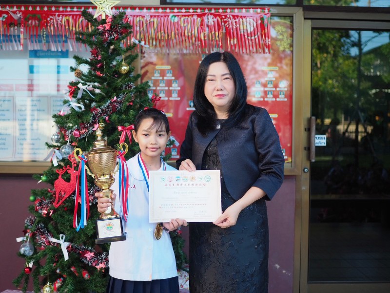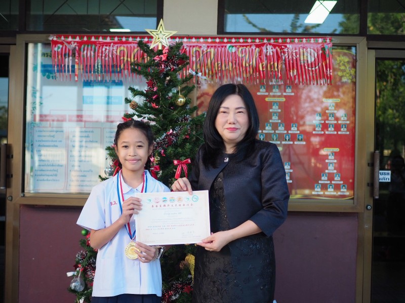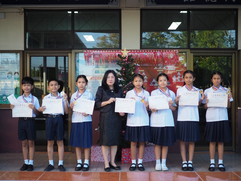 หลังเสร็จสิ้นการแข่งขันทักษะวิชาการภาษาจีน ครั้งที่ 17 ชมรมโรงเรียนสอนภาษาจีนภาคตะวันออกแห่งประเทศไทย ผู้อำนวยการโรงเรียนได้มอบถ้วยรางวัล เหรียญรางวัล เงินรางวัล และเกียรติบัตร หน้าเสาธง เพื่อให้คณะครูและนักเรียนได้ร่วมชื่นชมผลงาน และร่วมแสดงความยินดีกับนักเรียนผู้ได้รับรางวัลอีกครั้งอย่างภาคภูมิใจ