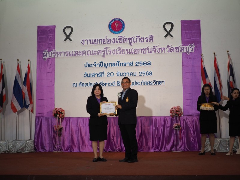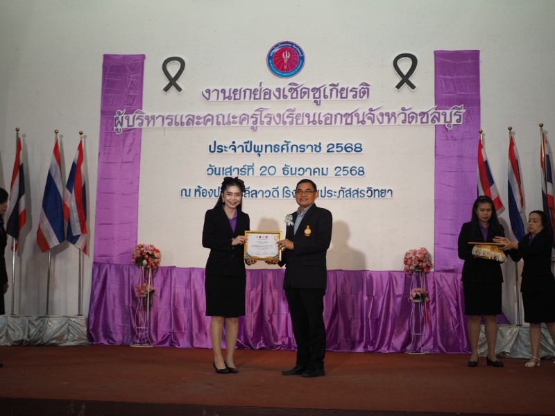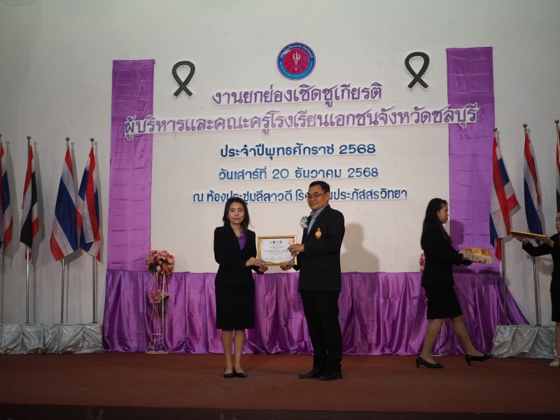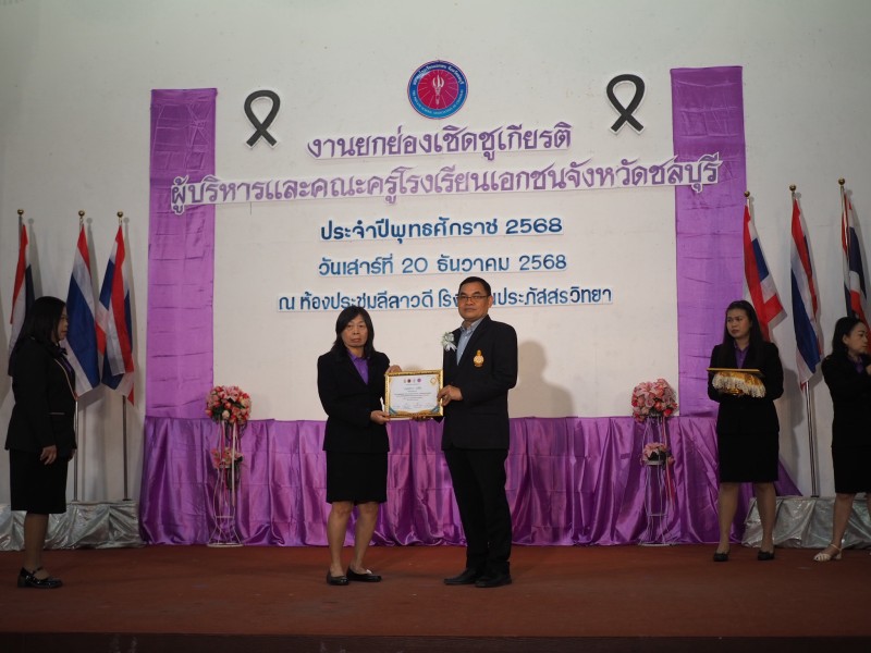 รับรางวัลเชิดชูเกียรติ เนื่องในงานยกย่องเชิดชูเกียรติ ผู้บริหารและครูโรงเรียนเอกชน จังหวัดชลบุรี