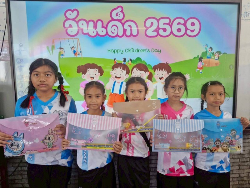 儿童节之际,为学生们捐赠食品、饮料及各类点心,为孩子们带来了无比的欢乐、温暖与灿烂的笑容。在这一重要的日子里,泰国总理向全国儿童与青少年赠予 2026 年儿童节寄语:“热爱泰国,关切世界”。这一寄语寓意深远,旨在引导儿童与青少年认识到自身作为社会一分子的角色与责任,不仅属于泰国社会,更是世界社会的一员。寄语强调要培养对国家的热爱、对社会的珍惜与关怀,并积极参与社会建设,共同应对作为世界公民所面临的各种挑战,无论是环境问题、科技发展,还是因文化多样性差异而产生的误解与冲突。