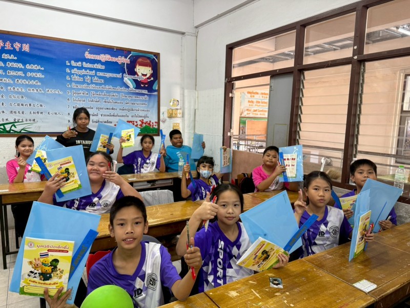 儿童节之际,为学生们捐赠食品、饮料及各类点心,为孩子们带来了无比的欢乐、温暖与灿烂的笑容。在这一重要的日子里,泰国总理向全国儿童与青少年赠予 2026 年儿童节寄语:“热爱泰国,关切世界”。这一寄语寓意深远,旨在引导儿童与青少年认识到自身作为社会一分子的角色与责任,不仅属于泰国社会,更是世界社会的一员。寄语强调要培养对国家的热爱、对社会的珍惜与关怀,并积极参与社会建设,共同应对作为世界公民所面临的各种挑战,无论是环境问题、科技发展,还是因文化多样性差异而产生的误解与冲突。