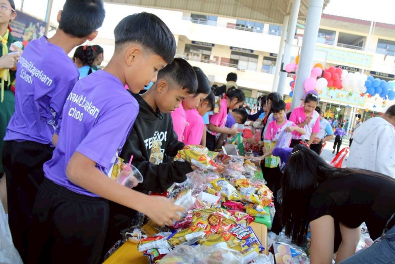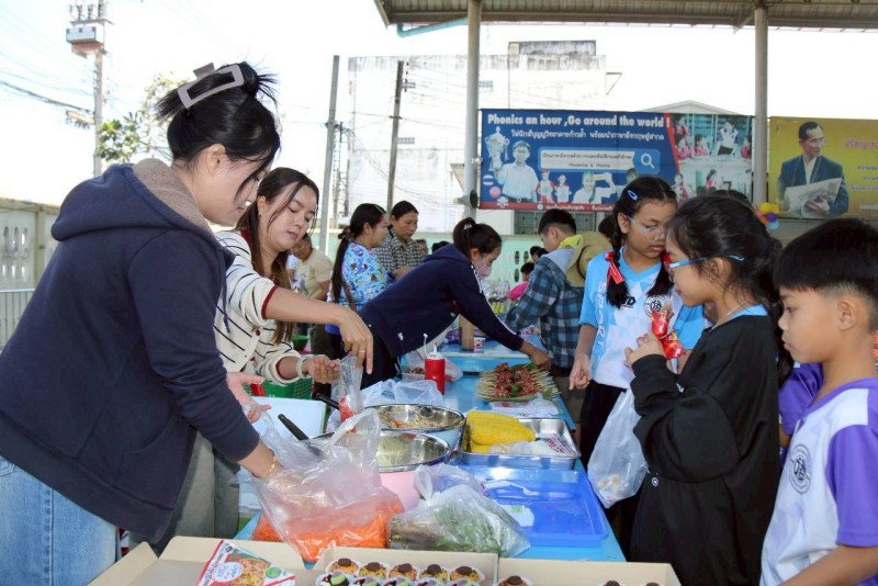 儿童节之际,为学生们捐赠食品、饮料及各类点心,为孩子们带来了无比的欢乐、温暖与灿烂的笑容。在这一重要的日子里,泰国总理向全国儿童与青少年赠予 2026 年儿童节寄语:“热爱泰国,关切世界”。这一寄语寓意深远,旨在引导儿童与青少年认识到自身作为社会一分子的角色与责任,不仅属于泰国社会,更是世界社会的一员。寄语强调要培养对国家的热爱、对社会的珍惜与关怀,并积极参与社会建设,共同应对作为世界公民所面临的各种挑战,无论是环境问题、科技发展,还是因文化多样性差异而产生的误解与冲突。